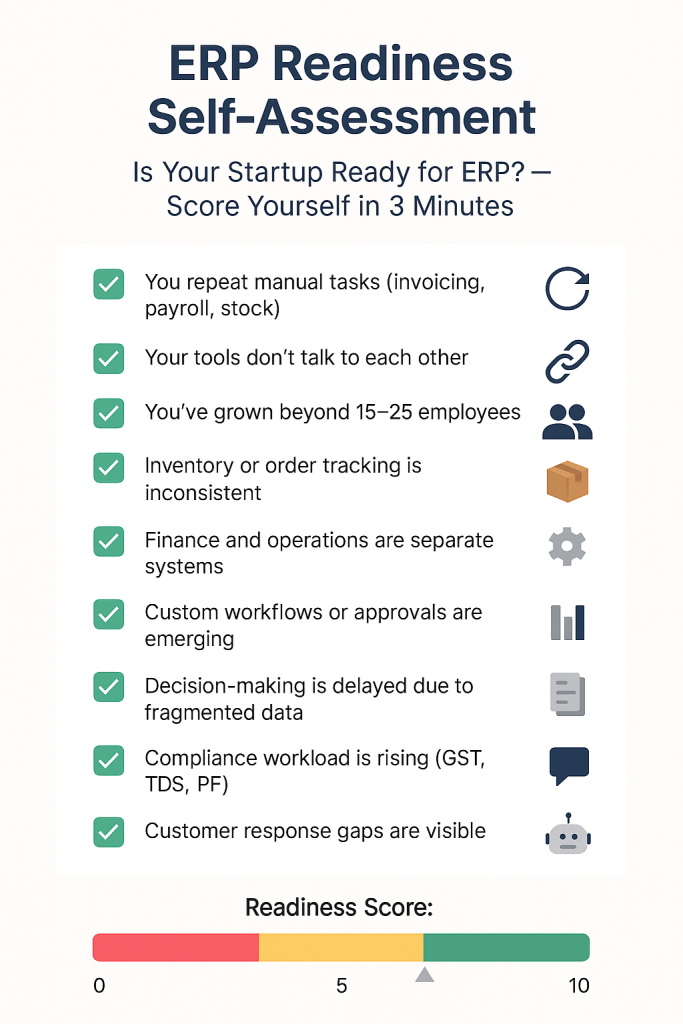 This checklist helps founders and operations leaders assess whether their startup has reached the stage where ERP will add measurable value rather than slow down agility.